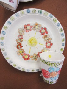 Her er noen fine kopper og tallerkener designet av 3. klasseelever.
